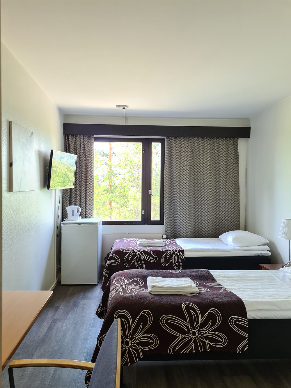 Economy-huoneet ovat hotellimme edullisin ja kompaktein huonevaihtoehto. Huoneet tarjoavat kaiken tarvittavan kätevään yöpymiseen – fiksu valinta lyhyemmille vierailuille. Economy-huoneet sijaitsevat hotellin toisessa kerroksessa, pohjoisen puolella ja ikkunoista avautuu näkymä luontoon.